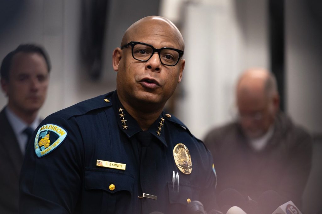 TỆP – Cảnh sát trưởng Madison Shon Barnes phát biểu với giới truyền thông về vụ xả súng tại Trường Cơ đốc giáo Abundant Life vào ngày 16 tháng 12 năm 2024, tại Madison, Wisconsin.Barnes được bổ nhiệm làm giám đốc mới của Sở Cảnh sát Seattle vào thứ sáu, ngày 20 tháng 12 năm 2024.