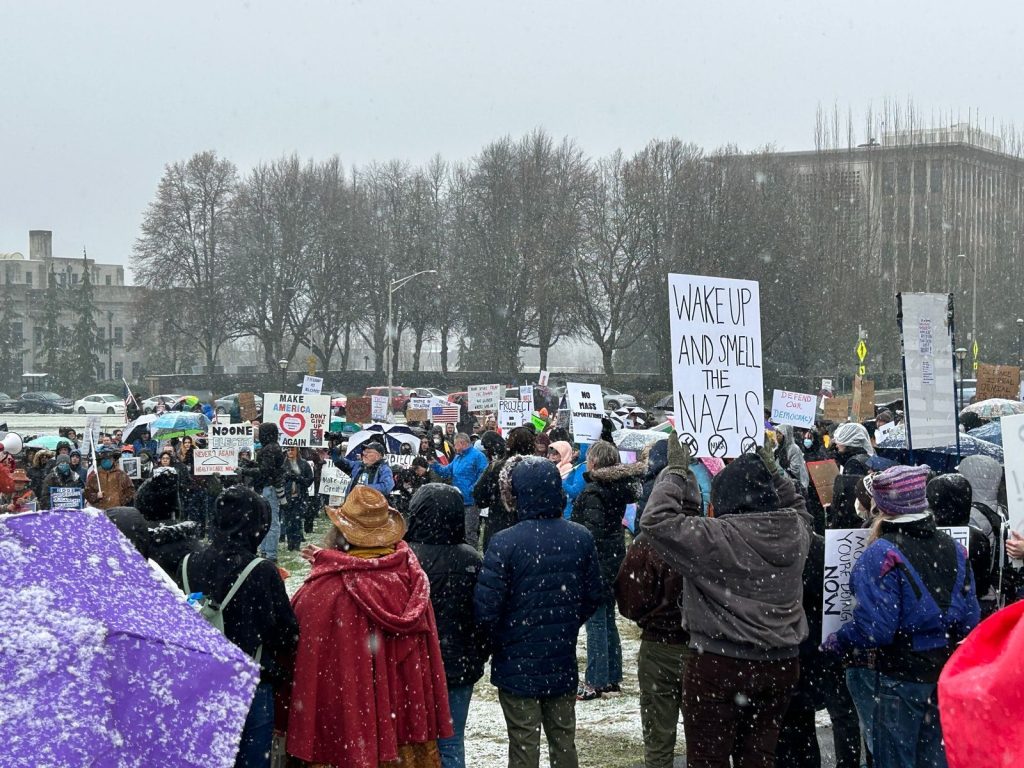 OLYMPIA, Wash. — Hàng trăm người biểu tình đã tập trung tại Tòa nhà Quốc hội Tiểu bang Washington vào thứ Tư như một phần của phong trào toàn quốc phản đối chính quyền Trump.
