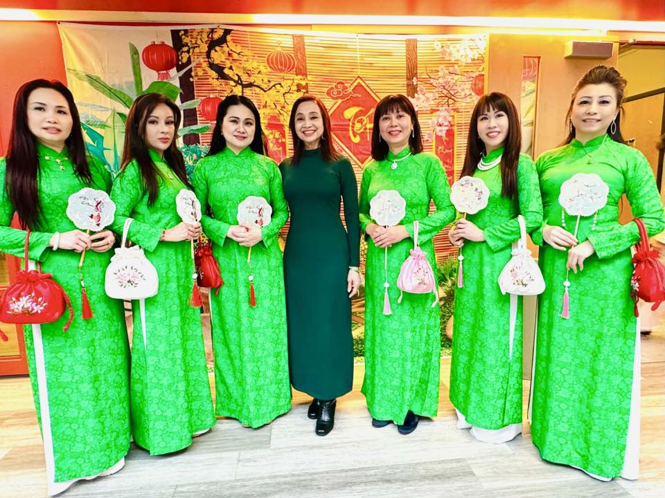 Để đánh dấu sắc xuân xa quê thêm ấm áp, quý nữ lưu trong trang phục áo dài truyền thống đã tham gia tiết mục thời trang đầy lôi cuốn, thể hiện tình cảm cao đẹp của người Việt dù xa quê ngàn dặm nhưng luôn trân trọng và gìn giữ văn hóa cội nguồn.