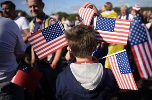 A boy carries US flags prior to a Pool B match of the 2015 Rugby World Cup between Samoa and USA at the Brighton community stadium in Brighton, south east England, on September 20, 2015. AFP PHOTO / LIONEL BONAVENTURE RESTRICTED TO EDITORIAL USE, NO USE IN LIVE MATCH TRACKING SERVICES, TO BE USED AS NON-SEQUENTIAL STILLS (Photo credit should …