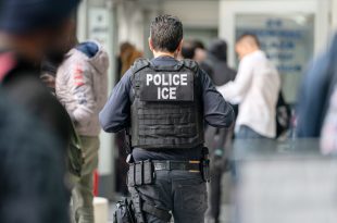 NEW YORK, NEW YORK – JUNE 6: An ICE agent monitors hundreds of asylum seekers being processed upon entering the Jacob K. Javits Federal Building on June 6, 2023 in New York City. New York City has provided sanctuary to over 46,000 asylum seekers since 2013, when the city passed a law prohibiting city agencies from cooperating with federal immigration …